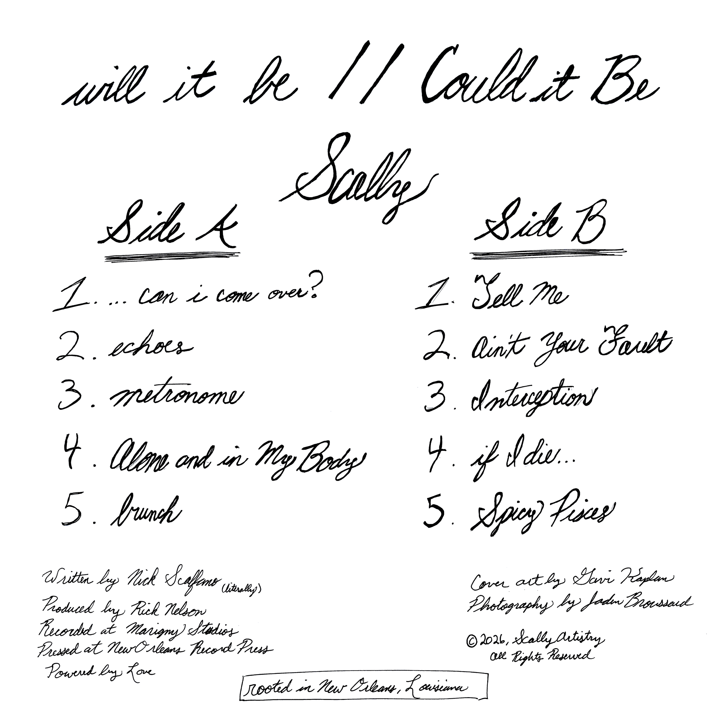 “will it be // Could it Be” will also be available on vinyl. It will be available at live shows coming up and in local independent record stores throughout the Gulf Coast (I will post which stores closer to March 20).
